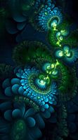 Blauwgroene fractals is een verbluffend digitaal kunstwerk dat de ingewikkelde schoonheid van fractals in blauwtinten laat zien. Het kunstwerk bestaat uit een reeks geometrische patronen die een betoverend effect op de kijker creëren. Elk individueel patroon bestaat uit kleinere vormen die zich herhalen en in grootte schalen, waardoor een ingewikkeld ontwerp ontstaat dat zowel complex als visueel aantrekkelijk is.