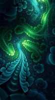 Blauwgroene fractals is een verbluffend digitaal kunstwerk dat de ingewikkelde schoonheid van fractals in blauwtinten laat zien. Het kunstwerk bestaat uit een reeks geometrische patronen die een betoverend effect op de kijker creëren. Elk individueel patroon bestaat uit kleinere vormen die zich herhalen en in grootte schalen, waardoor een ingewikkeld ontwerp ontstaat dat zowel complex als visueel aantrekkelijk is.