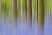 Boshyacinten in een beukenbos geabstraheerd door beweging van de camera tijdens de belichting.