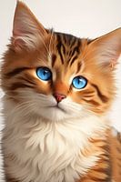 Stap binnen in de wereld van "Blauwogige Schoonheid", een betoverend hyperrealistisch portret dat de onweerstaanbare charme van een kat vastlegt. Dit moderne kunstwerk, met zijn levendige oranje, witte en beige tinten, brengt de zachte textuur van de kattenvacht tot leven, terwijl de diepblauwe ogen je blik vasthouden en niet meer…