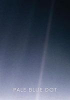 De foto laat de Pale Blue Dot zien, een foto die is gemaakt door de ruimtesonde Voyager 1 op aanraden van Carl Sagan. De aarde is te zien als een kleine, lichtblauwe stip.