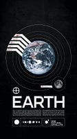Een infografische voorstelling van de aarde, met aandacht voor de natuurlijke satelliet (de maan) en belangrijke momenten in de vroege geschiedenis van de ruimteverkenning, waarbij satellieten worden verbonden met de baan van de planeet'en.