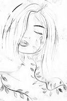 Zwart-wit portret van een vrouw,mixed media met lijntekening en grof papier. Zen, gelukkig,liefde