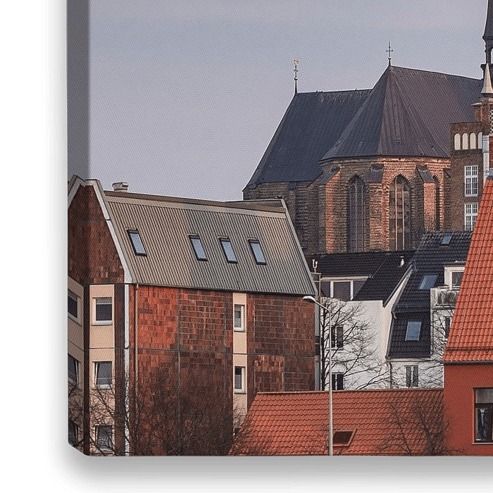 Koop de foto Blick auf historische Gebäude in Rostock van Rico Ködder als print op canvas, aluminium dibond, (ingelijste) fotoprint, behang en ArtFrame. Voor jou op maat geprint in Fine-Art kwaliteit.