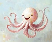 Blije Octopus - Op dit dieren schilderij zie je een vrolijke octopus met blije gezichtsuitdrukking en schitterende tentakels die op een speelse manier zijn afgebeeld, waardoor het een levendig en positief gevoel oproept.