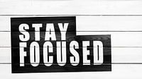 Blijf gefocust - motiverende slogan. Wit schrijven op houten planken