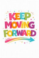 Dit dynamische typografische kunstwerk symboliseert vooruitgang en veerkracht door middel van gedurfde letters en directionele grafische elementen. Het opbeurende kleurenpalet en de motiverende boodschap inspireren tot groei en voortdurende verbetering, waardoor het een sterk middelpunt vormt voor moderne interieurs.