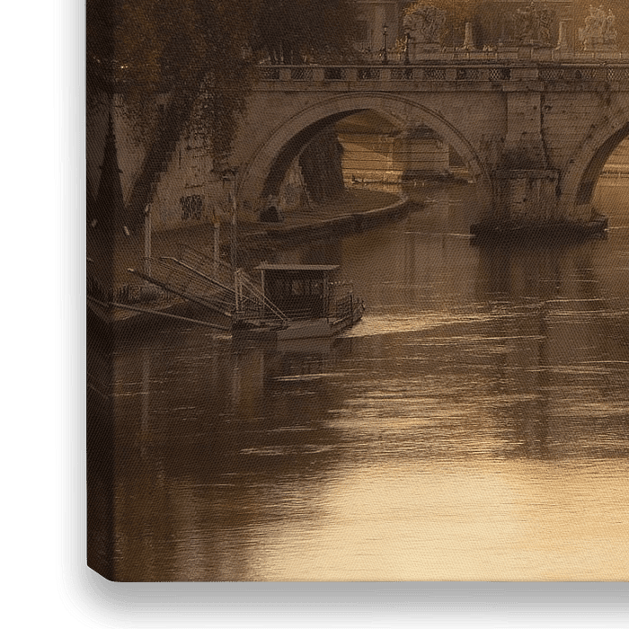 Warm winterlicht valt over de Tiber in Rome in Italië met op de achtergrond de Sint Pieters kerk en de Ponte Sant'Angelo. Een sfeervolle opname van Rome waarbij de mist en het warme zonlicht de oude stad een bijzondere sfeer geeft.