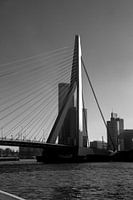 Een blik op Zuid met de Erasmusbrug en daar achter een deel van de Kop van Zuid in zwart wit