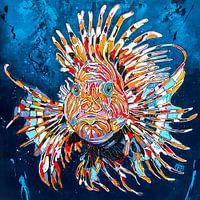 Duik in de betoverende diepten met dit fascinerende schilderij van een koraalduivel die je recht aankijkt.