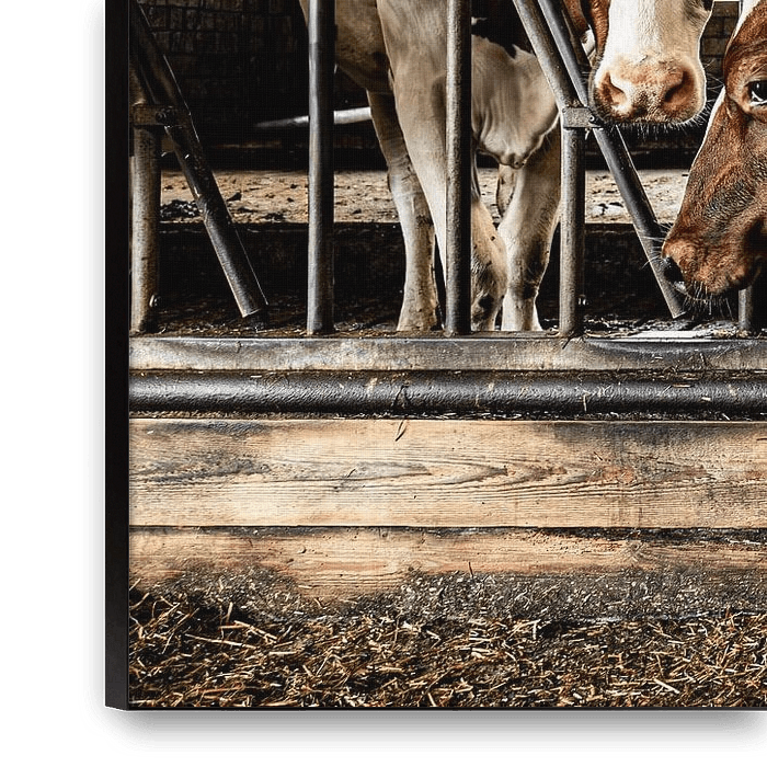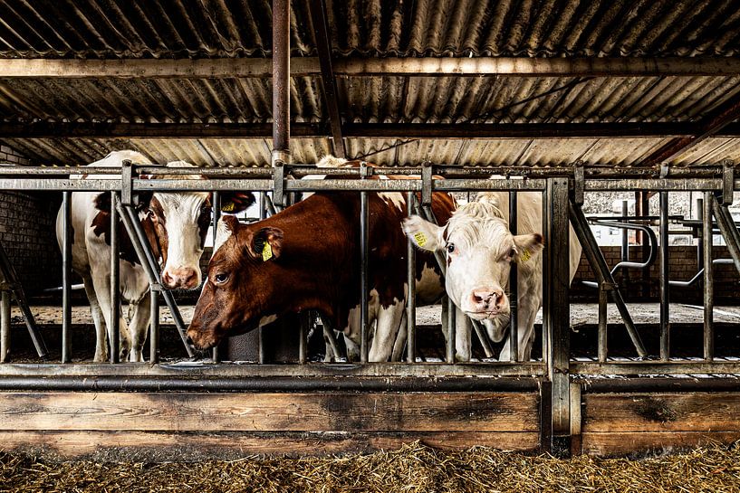 Koop dit koeien kunstwerk Blikken uit de koeienstal van Marco Leeggangers als print op canvas, aluminium dibond, (ingelijste) fotoprint, behang en ArtFrame. Voor jou op maat geprint in Fine-Art kwaliteit.