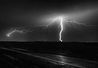 Enorme bliksemschicht slaat in boven Lelystad Haven bij nacht.