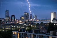 Blikseminslag in Rotterdam (avondfoto skyline)