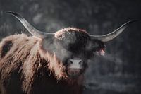 De vrieskou, de warme adem van de Schotse Hooglander en het zonlicht maakte dit surrealistische beeld mogelijk. Doordat het licht van achter scheen viel de schaduw van haar enorme hoorn precies over het oog van het dier, wat ik een bijzonder, prachtig en vreemd beeld vind geven.