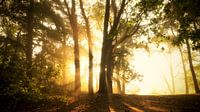 De zon is op en probeert de mist de verdrijven in de bossen rondom de Hatertse vennen.De ochtend stond heeft goud in de mond was deze keer zeker waar! De gouden kleuren geven een warme gloed over dit mooie natuurgebied. De Hatertse vennen op het mooist. Dit natuurgebied bij Nijmegen is een geliefde plek om de zonsopkomst te fotograferen. Aan het einde van de zomer begint de heide paars te bloeien, wat het landschap een mooie gloed geeft.Hatertse en Overasseltse Vennen is een vennengebied van ca. 520 hectare in de gemeentes Heumen en Wijchen, provincie Gelderland. Het gebied bestaat uit zo'n twintig benoemde vennen en het omliggende rivierduin-, heide- en bosgebied. Het gebied ligt ten zuidwesten van Nijmegen. Ooit is dit gebied, ten zuidwesten van Nijmegen, ontstaan door de Waal en de Maas. Inmiddels liggen beide rivieren hier een eind vandaan, maar door de rivierklei die ze achtergelaten hebben kun je nu genieten van de ruim 20 vennen.