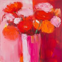 Bloei is een expressief en krachtig schilderij dat de essentie van groei, levenslust en emotie vangt zonder zich te binden aan realistische vormen. Het werk toont een vaas met bloemen, maar niet als een exacte weergave van de werkelijkheid. In plaats daarvan is het een beleving: een moment van bloeien, gevangen in kleur, beweging en…