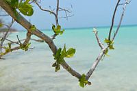 Een bloeiende mangrove met het lichtblauwe bounty water op de achtergrond. Een mooi rustgevend beeld.