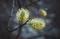 Bloeiend wilgenkatje met gele stuifmeeldraden.