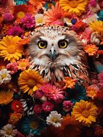 'Bloeiende Blik' is een verbluffende kunstfoto waarin de intense blik van een uil wordt omringd door een zee van bloemen, een symfonie van kleur en leven. De uil, met zijn fascinerende verentooi, kijkt je aan met grote, doordringende ogen die een wereld van wijsheid lijken te bevatten. Het kleurenpalet is rijk en levendig met tinten van…