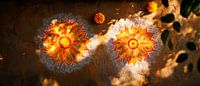 Heldere zonnebloemen in stralend geel en oranje ontvouwen zich op een zachte achtergrond, omgeven door delicate schaduwen. Deze levendige compositie geeft elke kamer een warme, uitnodigende sfeer en is bijzonder geschikt voor de woonkamer, waar het gezelligheid en levensvreugde uitstraalt. Ideaal voor iedereen die van frisheid en kleur…