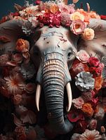 "Bloeiende Sereniteit" is een betoverend kunstwerk waarin de zachte, meditatieve blik van een olifant harmonieus samengaat met een explosie van florale schoonheid. De natuurlijke grijstinten van de olifant, versierd met een kroon van levendige bloemen, brengen een vredige, maar ook levendige sfeer in elke ruimte. Dit stuk zou ideaal passen in een omgeving die rust en contemplatie uitstraalt, zoals een thuisbibliotheek, een rustige hoek in een woonkamer of zelfs een yoga- of meditatieruimte die baat heeft bij een kalmerende, maar kleurrijke aanwezigheid.