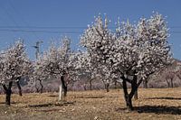 Amandelbloesems in Oria, Almeria, Spanje. Een roze witte bloemenzee in de Amanzora Vallei. Ieder jaar in februari kleurt de natuur deze vallei.