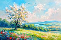 Bloeiende boom in kleurrijk lente landschap van Art & Soul Creations