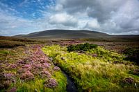 De heide bloeit op het veenland bij Bangor Erris, is county Mayo Ierland