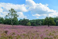 Bloeiende heideplanten in heidelandschap tijdens een zomerse dag in natuurgebied de Veluwe op de Renderklippen en Dellen bij Heerde in het noorden van de Veluwe in Gelderland.