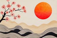 Een harmonieuze combinatie van zachte golven, bloeiende kersenbloesems en een stralende zonsondergang creëert een vredige sfeer. De warme kleuren van het zonlicht versmelten met de zachte contouren van het landschap en nodigen je uit om te ontspannen. Dit kunstwerk is perfect voor de slaapkamer of een gezellige woonkamer om een…