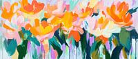 Stel je een boeket vrolijke bloemen voor die letterlijk uit het doek springen - felle oranje tinten smelten samen met zachte pasteltinten, terwijl de dynamische penseelstreken letterlijk dansen. Deze levendige compositie brengt frisse energie in elke woonkamer en roept een sfeer op vol levensvreugde en creativiteit. Een perfecte…