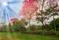 Koop dit bloemen kunstwerk Bloeiende lapachobomen in Paraguay van Jan Schneckenhaus op canvas, aluminium dibond, (ingelijste) fotoprint, behang en ArtFrame, op maat geprint in Fine-Art kwaliteit.