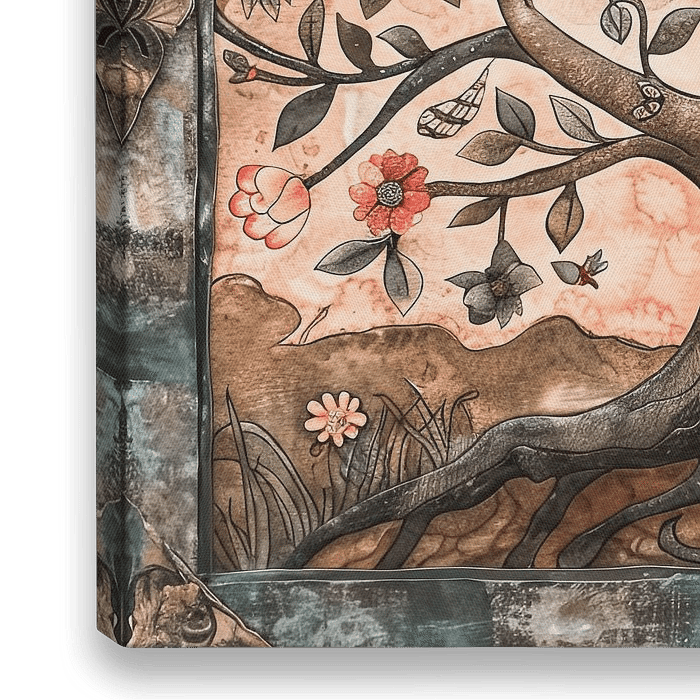 De afbeelding toont de Levensboom, een krachtig symbool dat in vele culturen en mythen voorkomt en thema's als groei, verbondenheid en vernieuwing belichaamt.