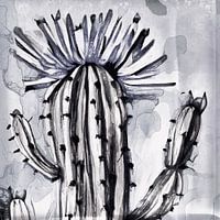 Bloeiende vintage cactus in grijsblauw is digitaal gemaakt in 4 kleurvariaties. Uitvoering: vierkant.