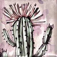 Bloeiende vintage cactus in roze met groen is digitaal gemaakt in 4 kleurvariaties. Uitvoering: vierkant.
