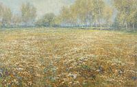Een bloeiende weide, geschilderd door Egbert Rubertus, in de verte begrensd door een rij berken. Het schilderij doet haast impressionistisch aan door de hoeveelheid individuele bloemen.