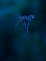 De bloem van het Wildemanskruid (Pulsatilla vulgaris). Vergankelijkheid vastgelegd tijdens het blauwe uurtje. Spelend met licht, bokeh effecten en de fijne delicate water en regendruppeltjes is er een sprookjesachtig mystieke sfeer ontstaan.
