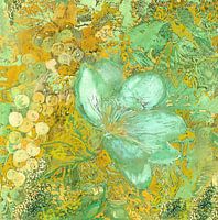 Koop dit bloemen kunstwerk Bloem groen en geel van Claudia Gründler op canvas, aluminium dibond, (ingelijste) fotoprint, behang en ArtFrame, op maat geprint in Fine-Art kwaliteit.