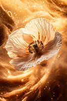 Dit prachtige ontwerp toont een delicate bloem omgeven door een zee van gouden licht. De gedetailleerde bloemblaadjes lijken bijna tastbaar, terwijl het licht op mystieke wijze rond de bloem draait. Het warme kleurenpalet van goud en beige straalt elegantie en rust uit, waardoor het perfect is voor een modern interieur. Dit ontwerp is een ware blikvanger die elke ruimte transformeert tot een stijlvol en inspirerend geheel. Geschikt voor woonkamers, eetkamers of kantoren. Een meesterwerk dat de schoonheid van de natuur combineert met een vleugje abstractie.