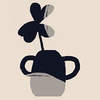 Bloem. Botanische illustratie in retrostijl in wit op roestbruin grijsDina Dankers Japandi. Abstract landschap met gouden zon en vogels op Japans patroon in okergeelDina Dankers