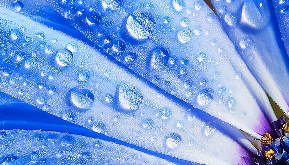 Bloem met regendruppels in blauwe kleur