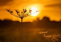 Close up van een bloem met tegenlicht tijdens de ondergaande zon in Wageningen. Het gouden uur is goed zichtbaar in deze foto.