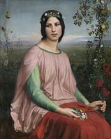 Bloem van de velden, Louis Janmot (1845) Deze melancholische vrouw, gezeten in een landschap en met vers verzamelde bloemen in de hand, cultiveert het mysterie. De precisie waarmee de schilder haar gezicht heeft weergegeven zou kunnen suggereren dat het om een portret gaat. De identiteit van zijn model blijft echter onbekend en haar gelaatstrekken lijken zowel realistisch als geïdealiseerd.