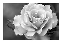 Zwart-wit macrofoto van een rozenbloesem