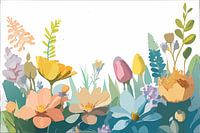 Pastelkleurige bloemenafbeelding, rustig en sfeervol. gemaakt vanaf een eigen foto uit mijn tuin te bewerken met A.I. Geeft meteen gezelligheid en natuur in je huis!