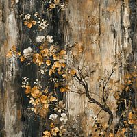Bloemen Beige - Dit charmante kunstwerk neemt je mee naar een mystieke tuin met een subtiele dans van flora op een rustieke achtergrond. Het palet tilt aardse tonen, zoals zacht beige en rijk oker, naar een elegante symfonie met zwarte en grijze accenten, resulterend in een natuurlijke en toch stijlvolle compositie. Textuur en detail verrijken het doek, waardoor het stuk veelzijdig genoeg is om zowel klassieke als landelijke interieurs aan te vullen.