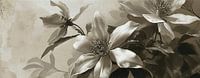 Bloemen Kunst | Monochroom Bloemenpracht - Dit schilderij toont een elegante compositie van bloemen in een monochroom palet, met een focus op texturen en lichtval die diepte en leven brengen in elke bloem en blad. De subtiele grijstinten en de nadruk op lijnwerk en schaduw zorgen voor een tijdloos en verfijnd kunstwerk, geschikt voor diverse interieurs.