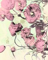 Geïnspireerd door het impressionisme presenteer ik je een prachtig botanisch natuurschilderij van bladeren en bloemen met roze gekleurde vormen.