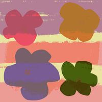 Deze serie kunstwerken, geïnspireerd door retro popart, brengt kleuren in je interieur.Eenvoudige botanische vormen op complexe mixed media achtergrond.Kleurrijke woontrend.Modern, Design, Industrieel, Boheems, Romantisch, Retro, Eclectische interieurstijl.