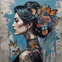 Schilderij Bloemen Portret No. 54.5 - een schilderij uit een reeks schilderijen over dromen, kleuren, vlinders en bloemen.